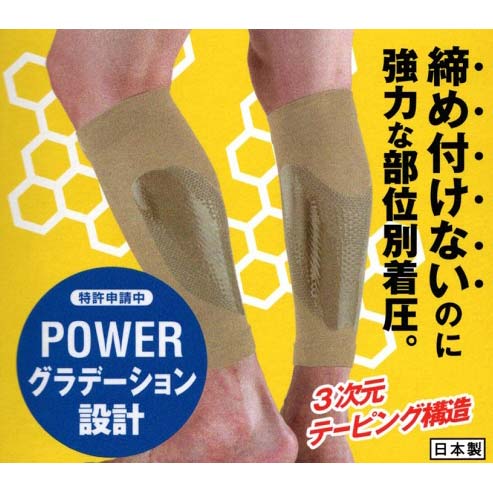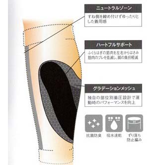 同じ周囲に複数の着圧値を存在させることにより、脚全体ではなく必要な部分に着圧するサポーターです。